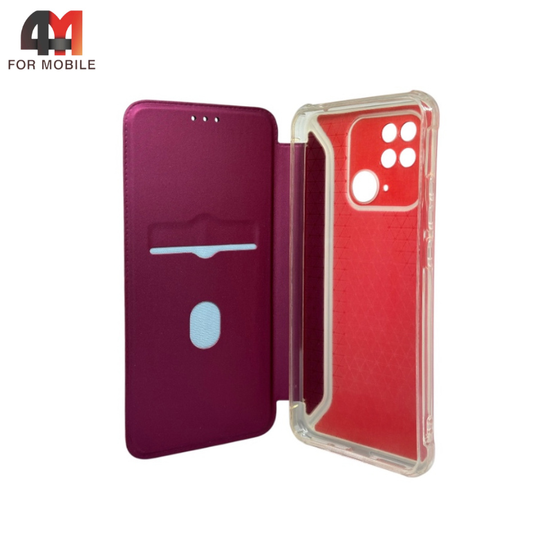 Чехол-книга для Xiaomi Poco C40/Redmi 10C с усиленными углами, бордового цвета