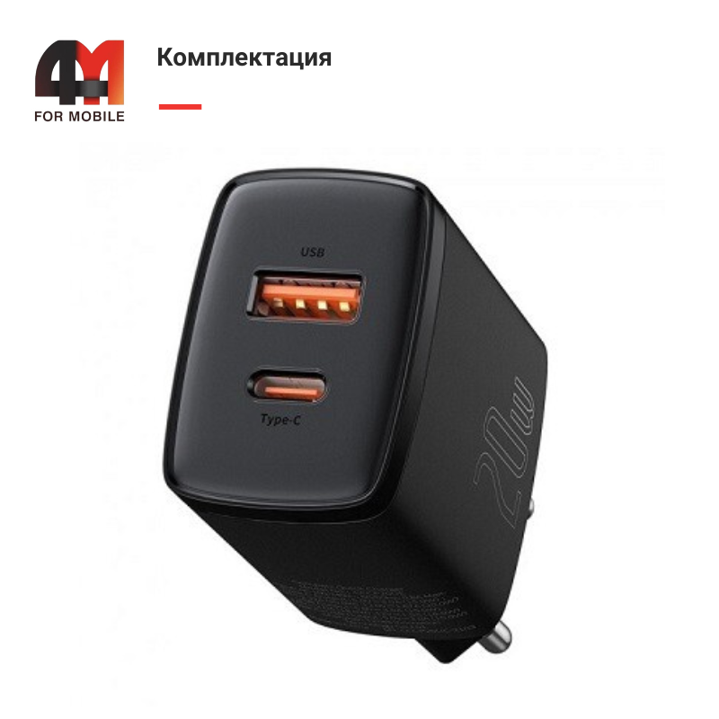 Купить Baseus Сетевой адаптер CCXJ-B01, USB+Type-C, 20W в черном цвете в интернет-магазине 4Mobile с доставкой по Беларуси.