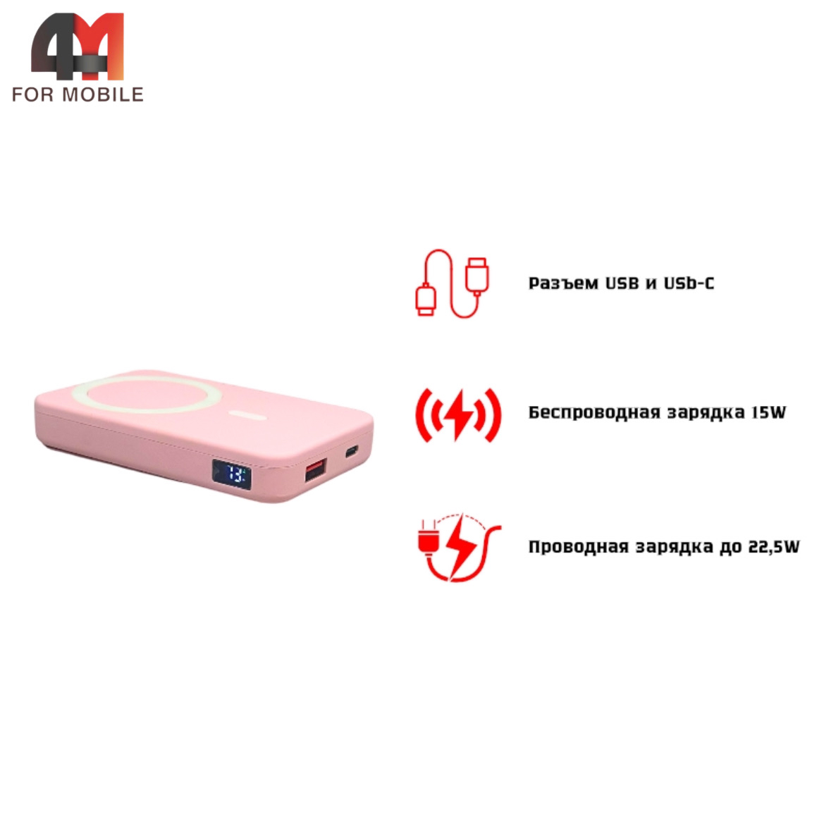 Power Bank MagSafe A27-1, 20W, розового цвета, 10000 mAh