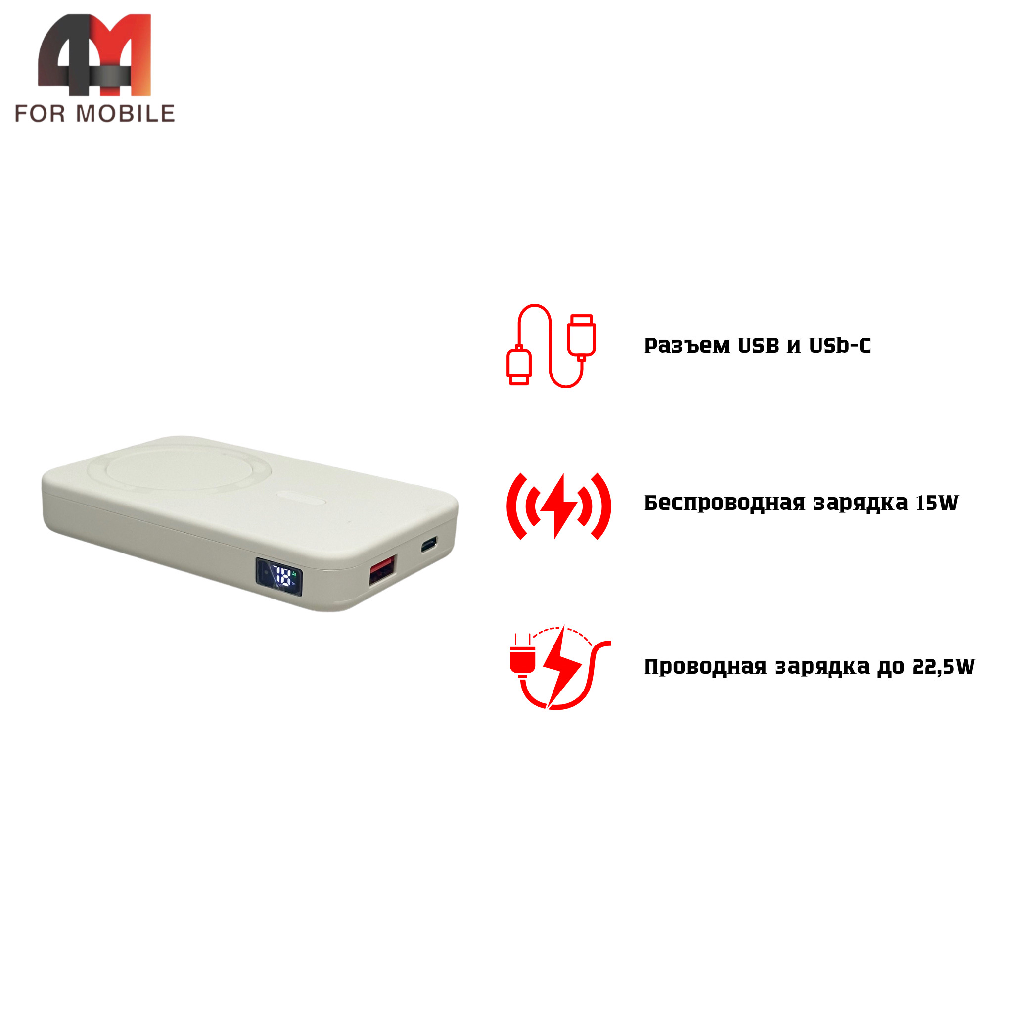 Встречайте новый Power Bank с Magsafe на 10000mAh, который станет верной поддержкой в вашей активной жизни. С его помощью ваш iPhone, iPad или любое другое устройство всегда будет на пике производительности, независимо от того, где вы находитесь.