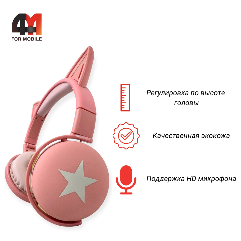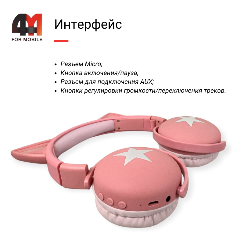 Наушники полноразмерные детские Cat, BK3, розовый