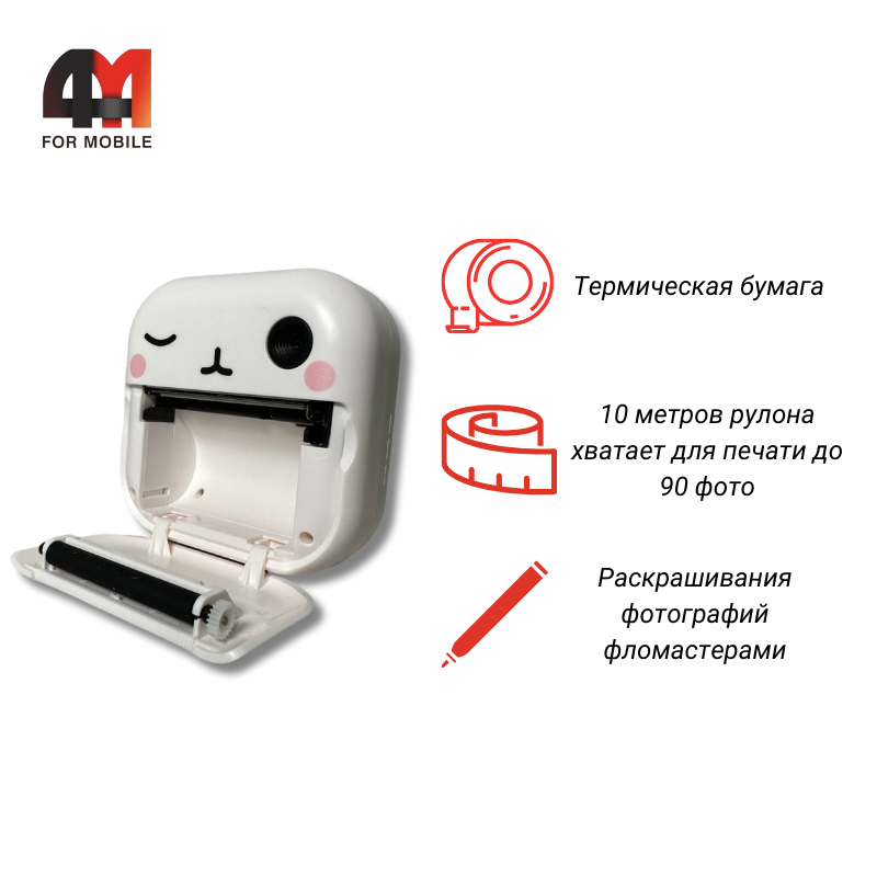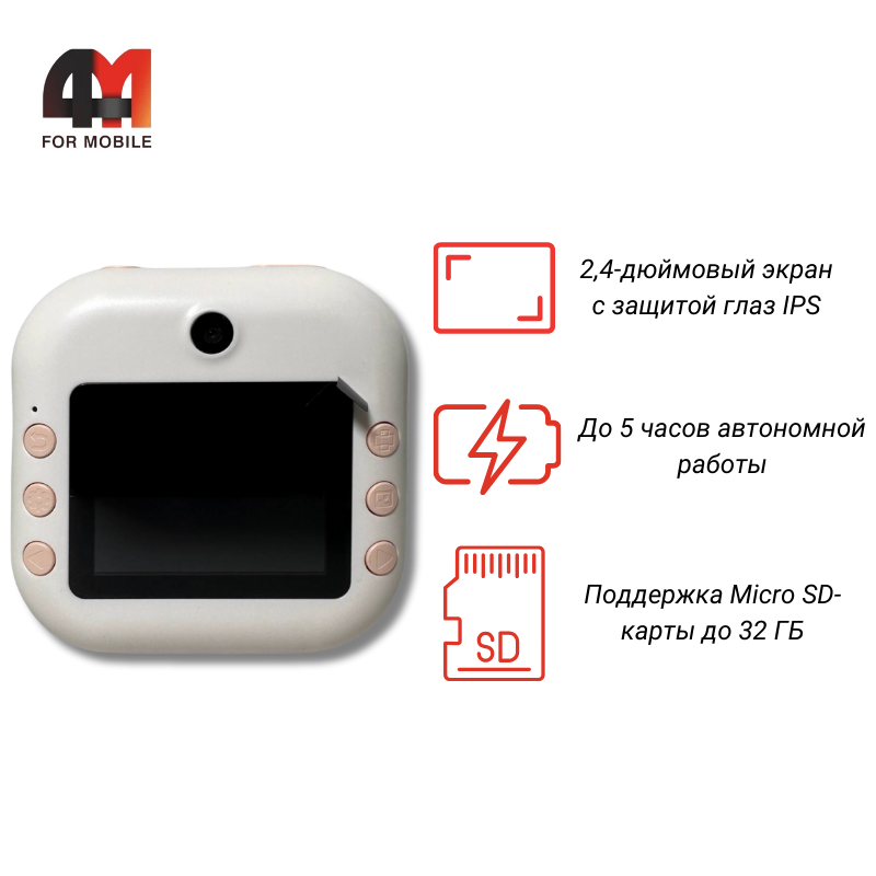 Детский фотопринтер с камерой, M2, белый
