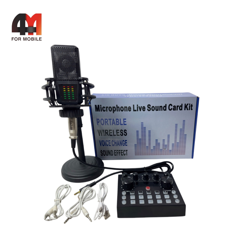 Комплектация: звуковая карта, микрофон, подставка для микрофона, кабель для зарядки Micro/для подключения к компьютеру, два кабеля AUX, кабель для подключения микрофона, инструкция пользователя.