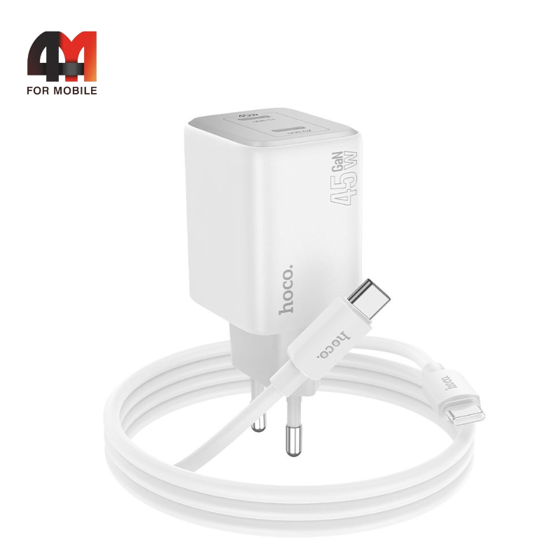 Более 3600 товаров в ассортиментеСетевой адаптер + кабель Hoco N42, Type-C To Lightning, 45W, белый