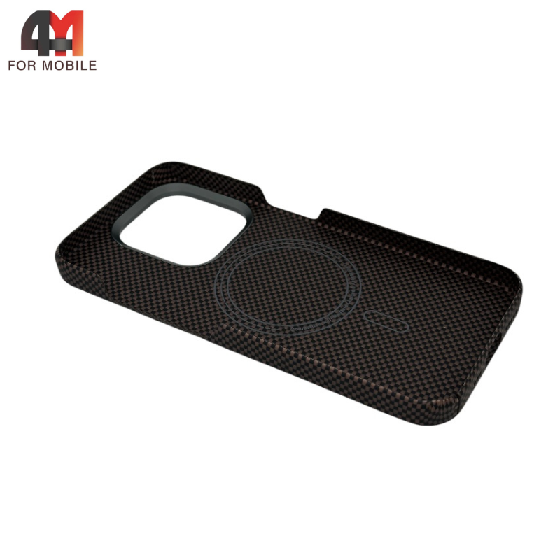 Чехол Iphone 15 Pro Max кевларовый 500D, MagSafe, коричневого цвета