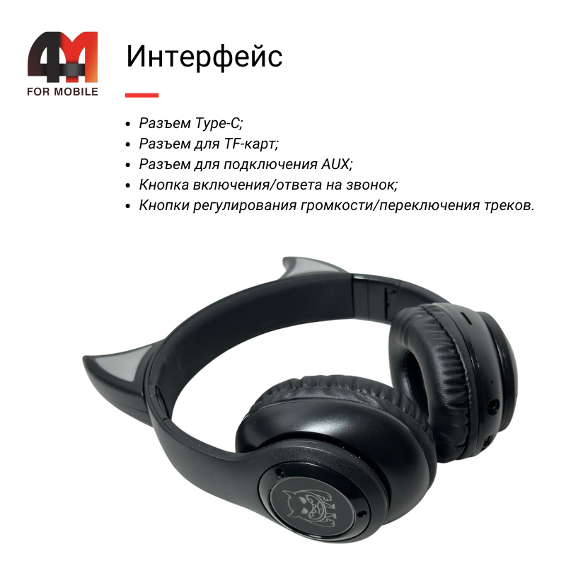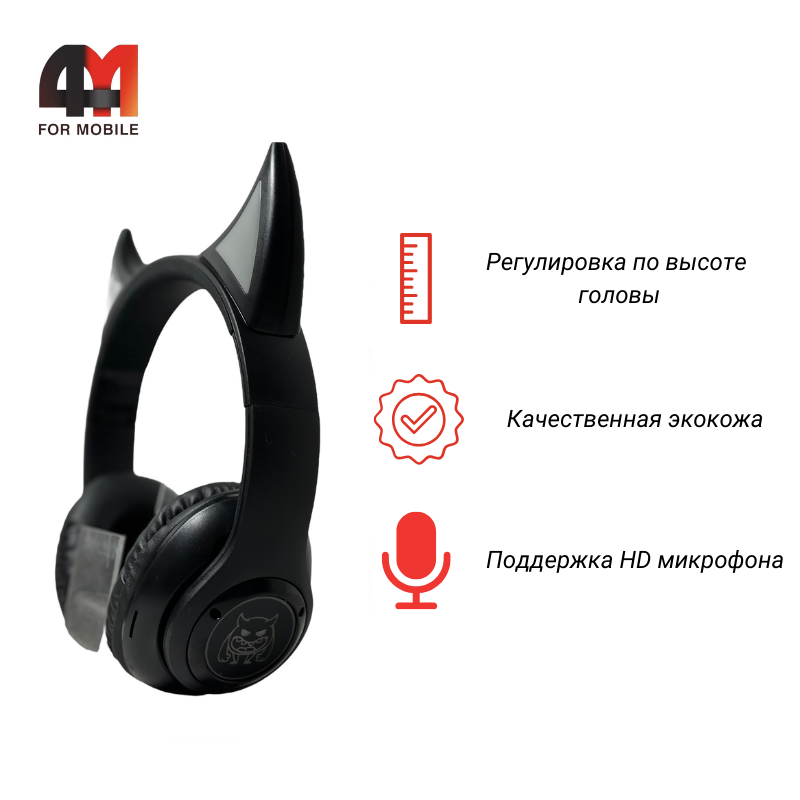 Черное исполнение наушников придаст стильный вид, а миниатюрная подсветка и заостренные ушки добавят волшебства в каждую музыкальную сессию.
