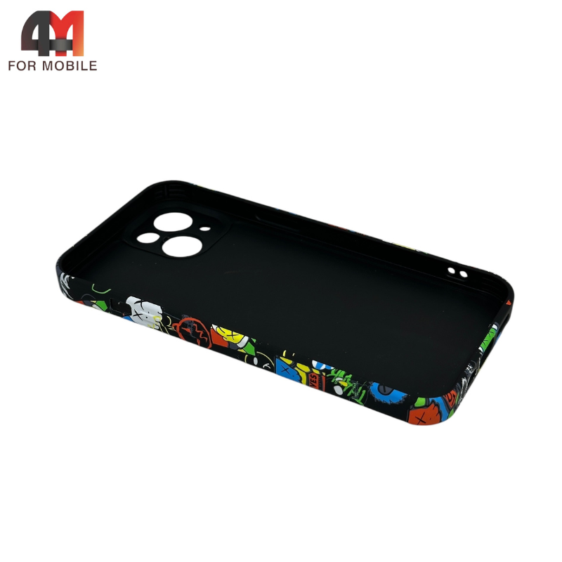 Чехол для Iphone 14 силиконовый с рисунком, 040 черно-оранжевый, luxo