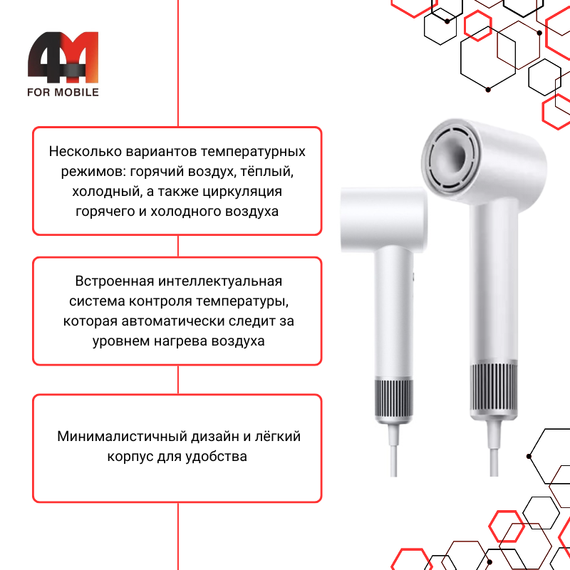 Если вы в поиске идеального фена, который быстро сушит волосы, не пересушивает их и помогает создавать стильные укладки, добро пожаловать! Фен Xiaomi Mijia Dryer H501 (GSH501LFT) - это настоящее открытие для тех, кто ценит качество, удобство и инновационные технологии в одной компактной модели.