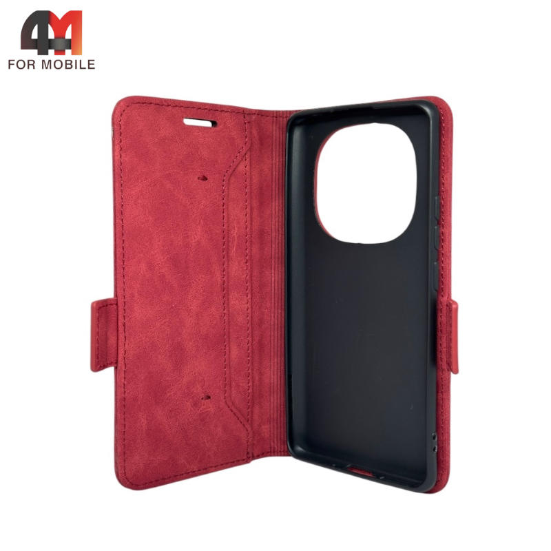 Чехол-книга для Xiaomi Redmi Note 14 Pro 5G бордового цвета, Case