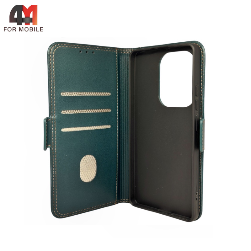 Чехол-книга для Xiaomi Poco M6 Pro 4G/Redmi Note 13 Pro 4G шов, зеленого цвета, Case