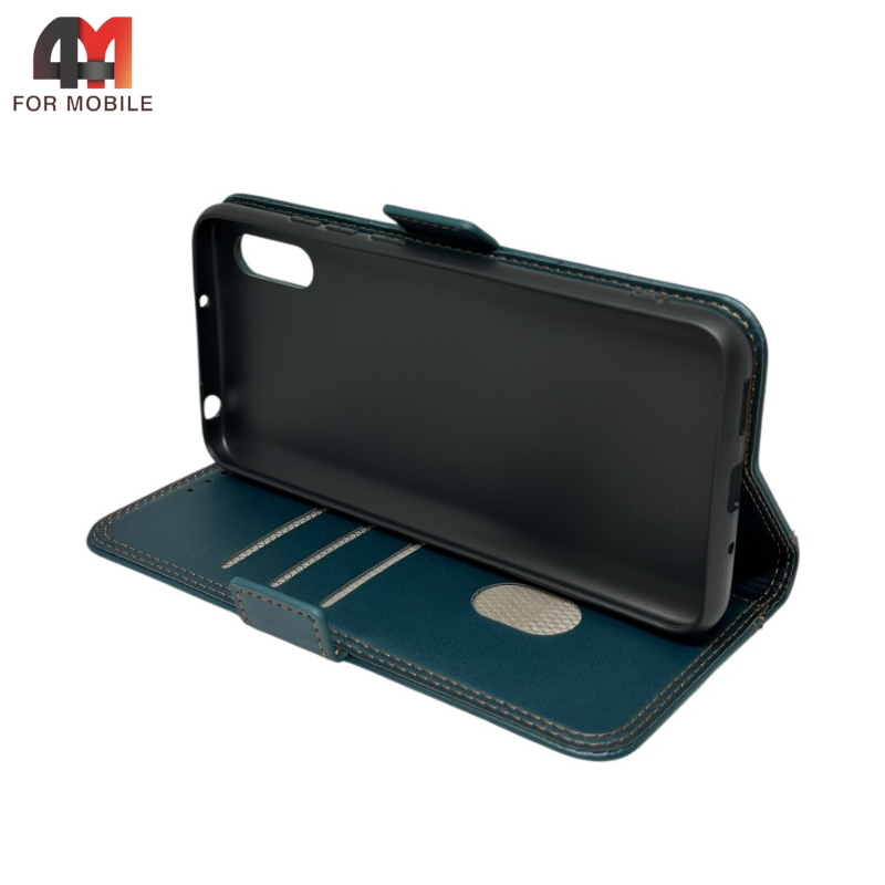 Чехол-книга для Xiaomi Redmi 9A шов, зеленого цвета, Case