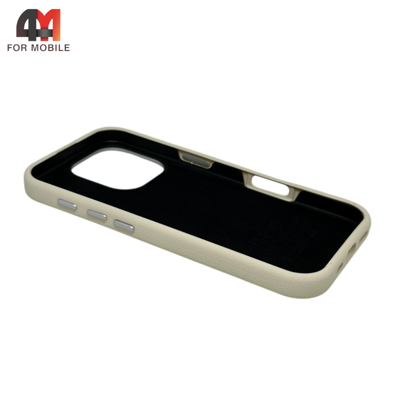 Бежевый чехол для iPhone 16 Pro Leather Case, Labubu