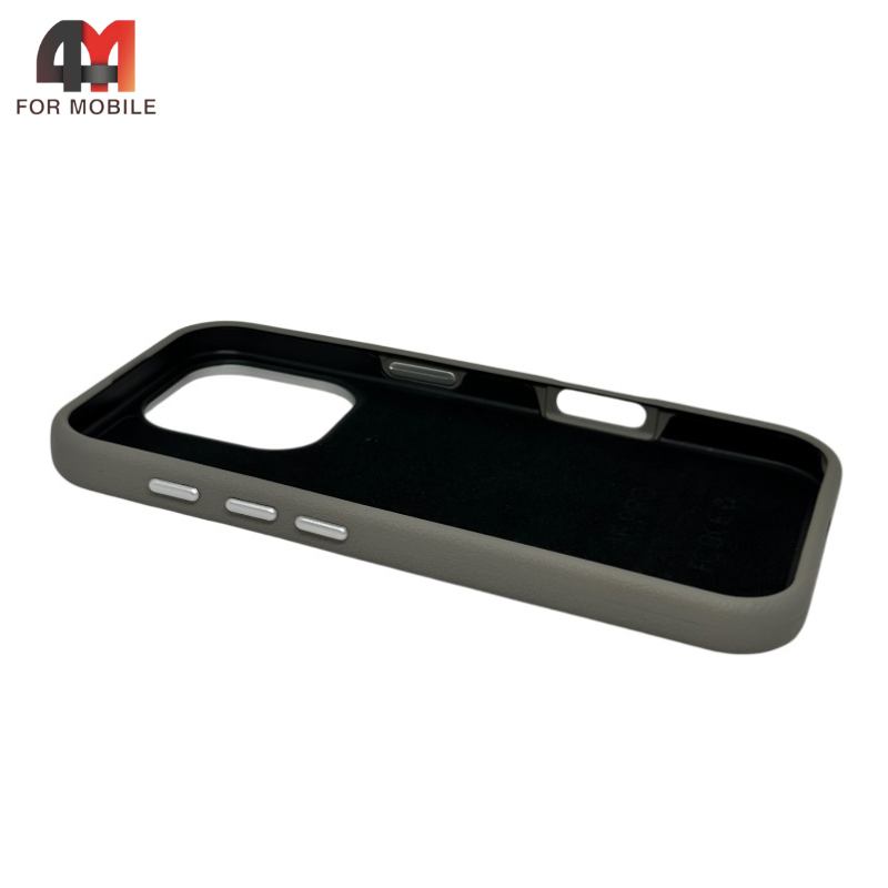 Чехол для Iphone 16 Pro Max Leather Case, Labubu, серого цвета