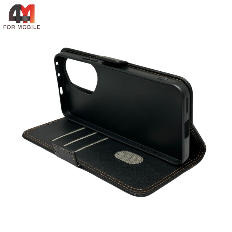 Чехол-книга для Huawei Honor 400 - со швом, чёрный, с магнитной застёжкой и отделениями для карт