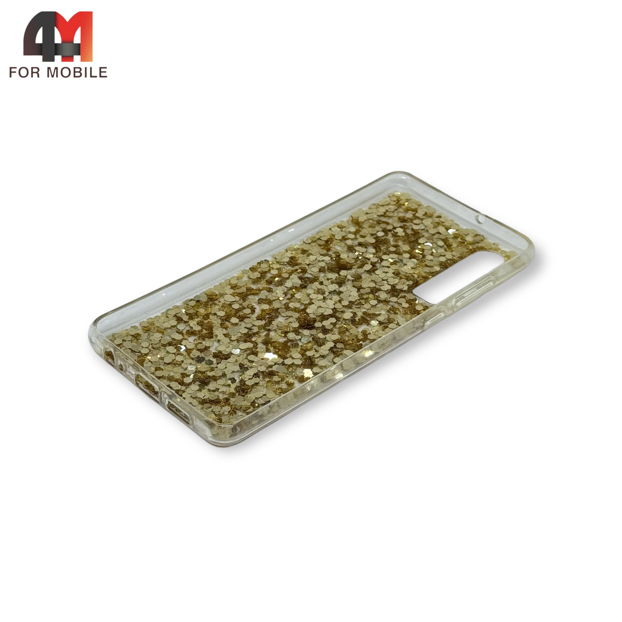 Чехол для Huawei P30 силиконовый, глиттер, золотого цвета
