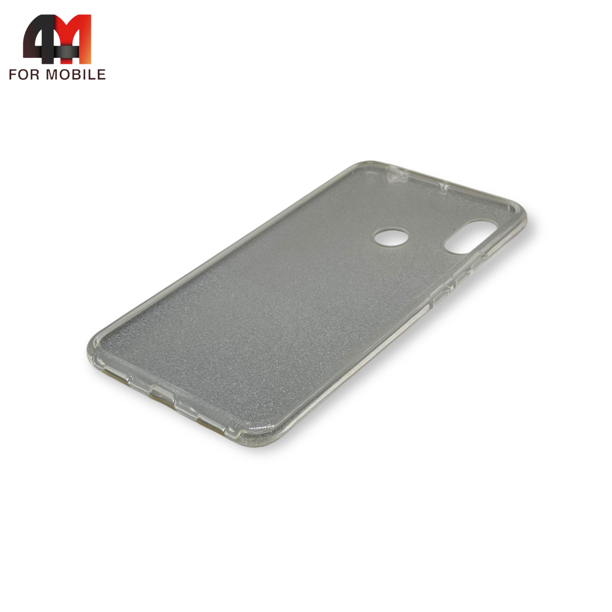 Чехол для Xiaomi Mi Max 3 силиконовый с блестками, серебристого цвета
