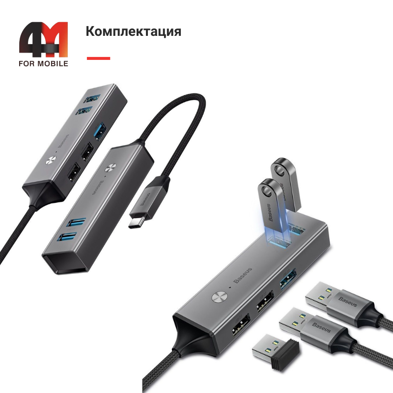 КупитьBaseus разветвлитель HUB CAHUB-D0G, Type-C to 5xUSB в сером цвете в интернет-магазине 4Mobile с доставкой по Беларуси.