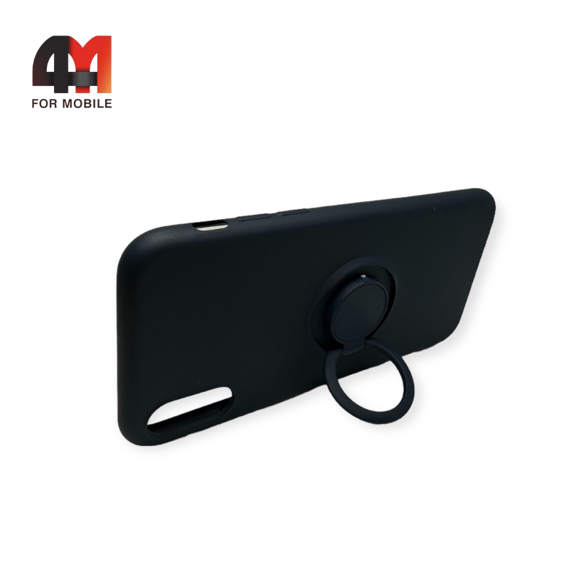 Чехол Iphone X/Xs силиконовый с кольцом, черного цвета
