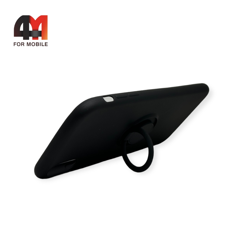 Чехол Iphone Xs Max силиконовый с кольцом, черного цвета
