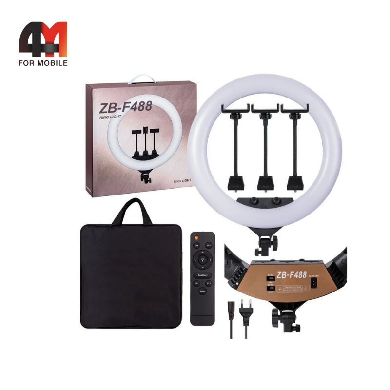 Профессиональное освещение: Кольцевая лампа ZB-F488 позволяет создавать профессиональное освещение для фото- и видеосъемки, устраняя тени и несовершенства, и придавая снимкам и видео высокое качество.